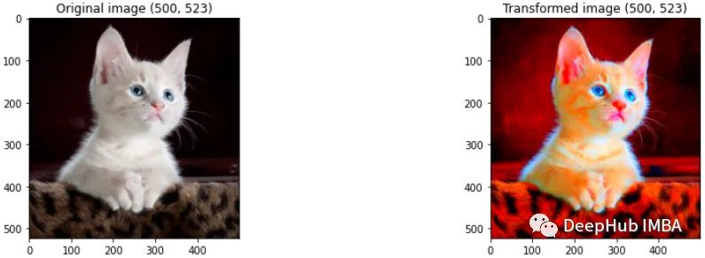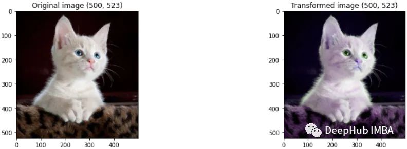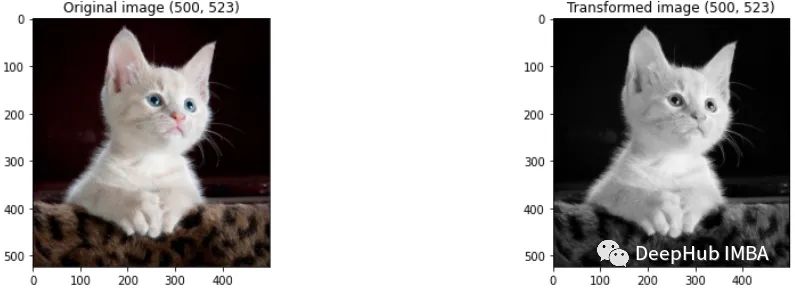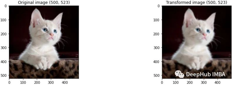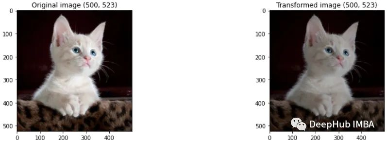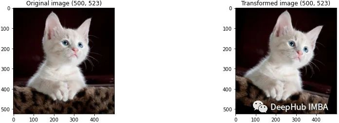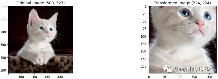 ax\[1\].set\_title\(f'Transformed image \{img.size\}'\)