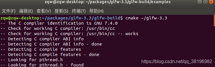 2.解压之后在glfw下直接创建glfw-build文件夹,对glfw-build文件夹选择在终端打开,输入cmake ~/glfw-3.3
