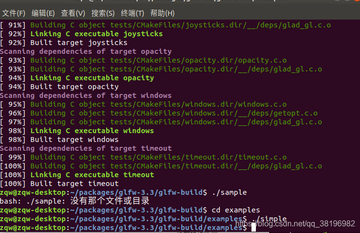输入sudo apt-get install libsdl2-dev 解决问题,重新输入cmake ~/glfw-3.3