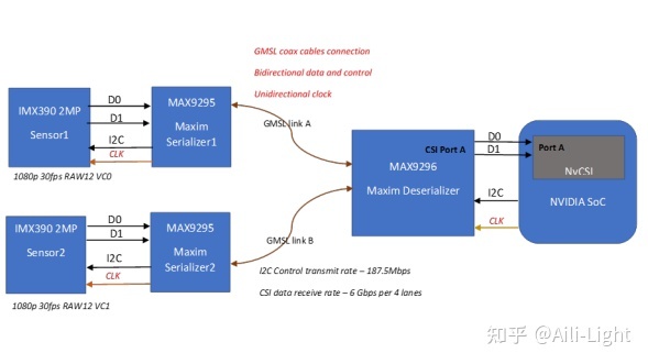 - 两路GMSL Link共同连接到解串器MAX9296