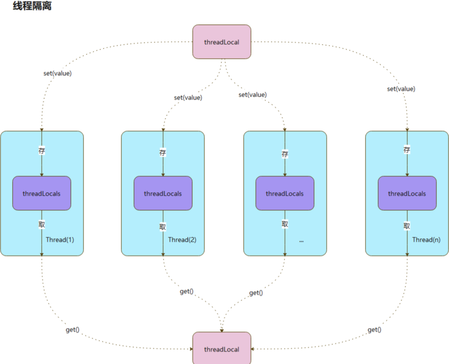 threadLocals是可以存储多个ThreadLocal,多个存取流程同理如下