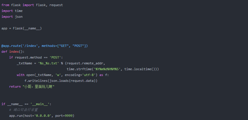 下来,我们在本地写一个最简单的Flask程序,用户获取回传的参数,代码如下: