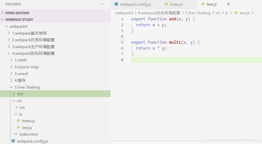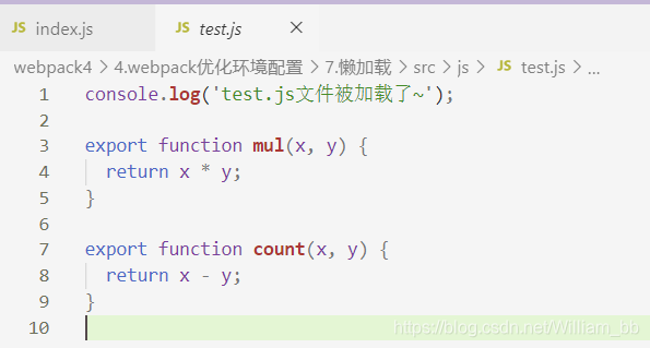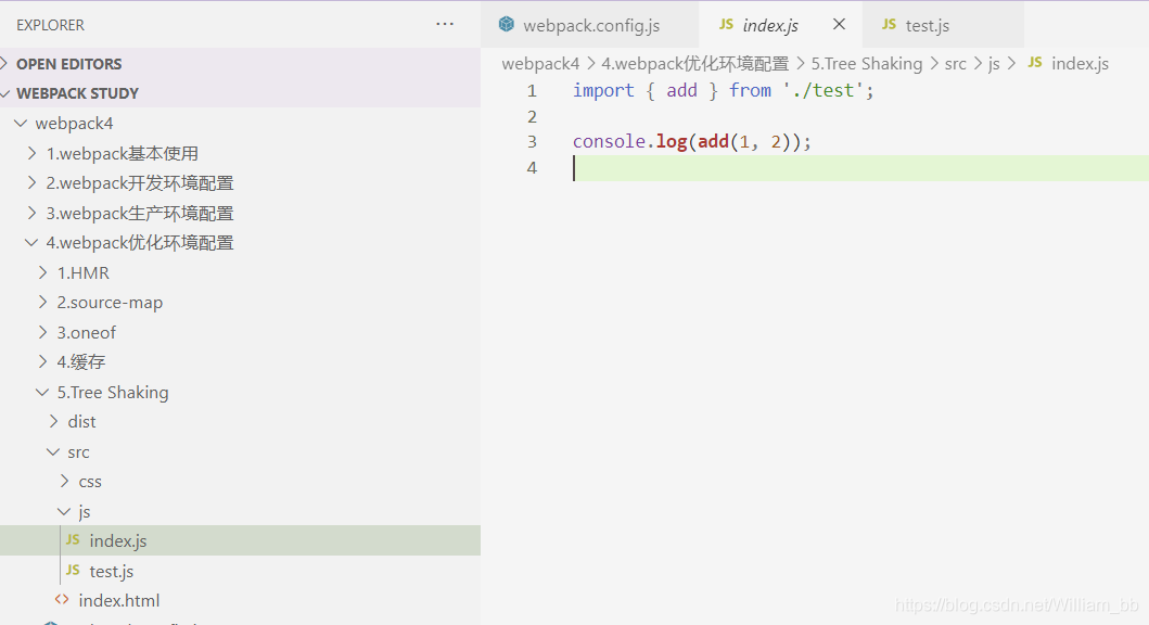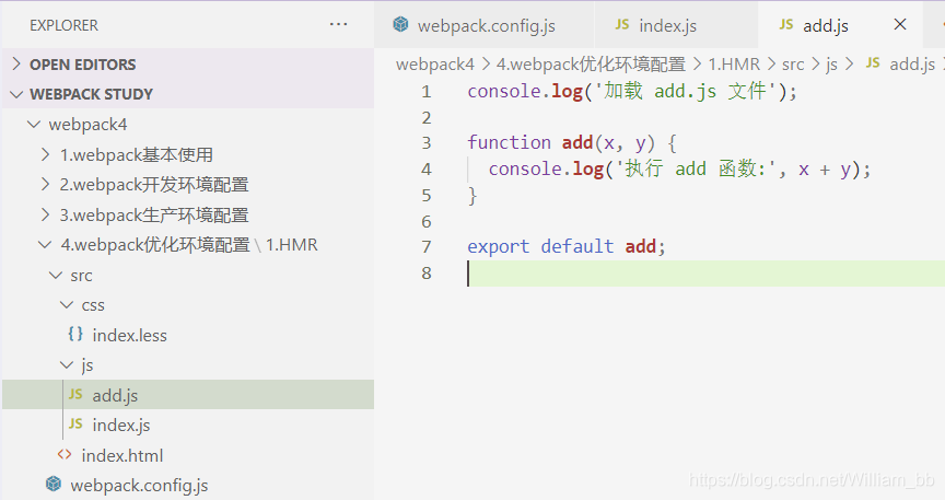 然后在 index.js 文件和 add.js 文件中写入如下代码: