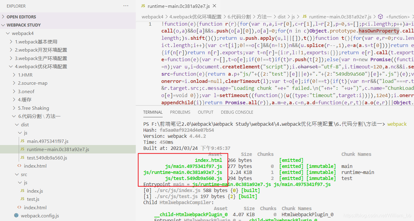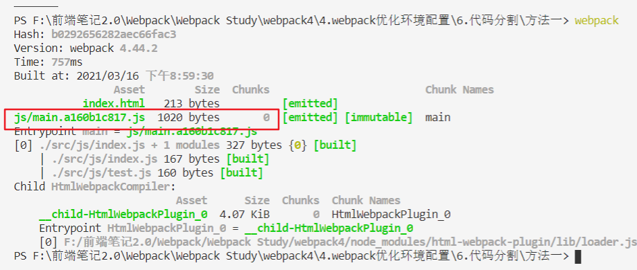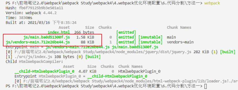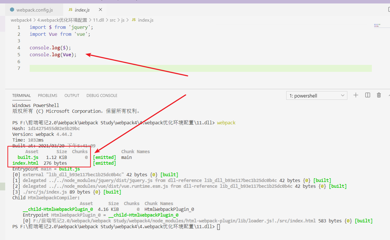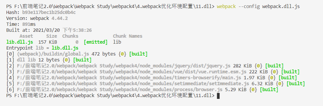 接着我们重新运行 webpack 指令(注意:这次不用再运行 webpack --config webpack.dll.js 指令了):