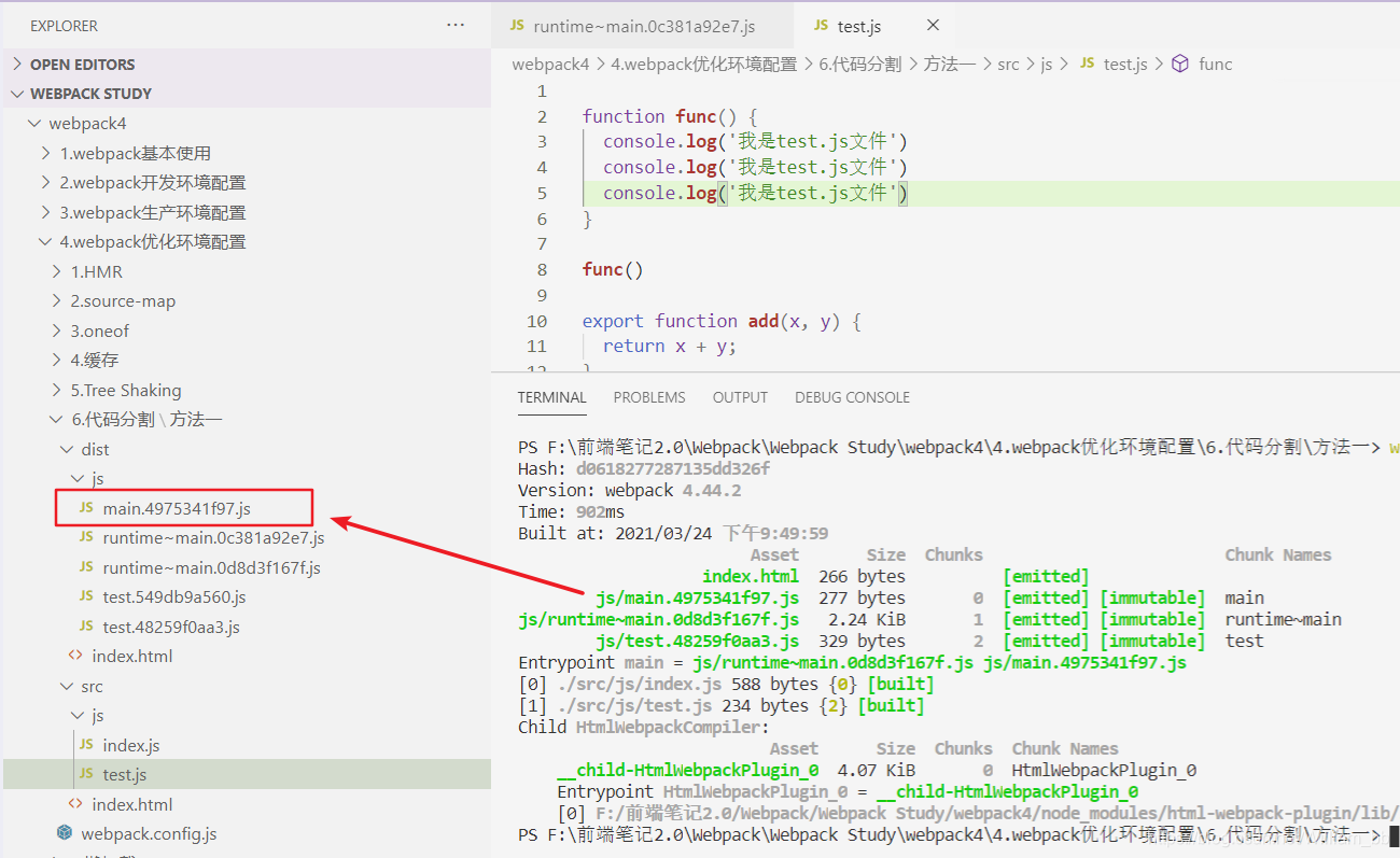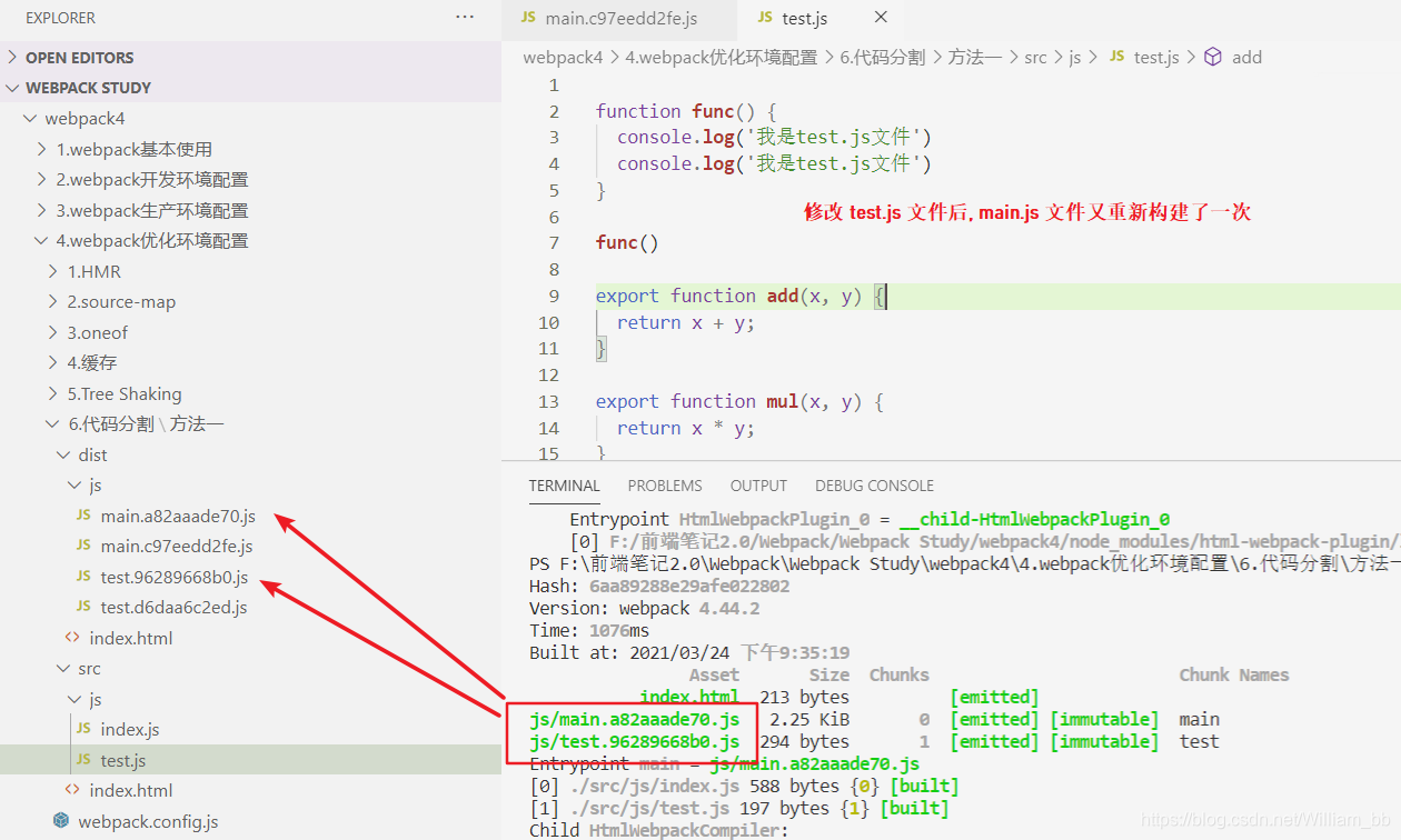此时再修改 add.js 文件,其它模块也不会重新打包一次了: