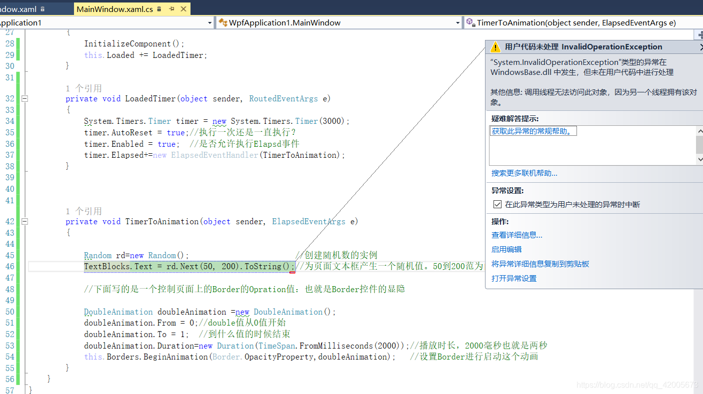 调用线程无法访问此对象,因为另一个线程拥有该对象问题,这种情况往往很常见,比如:说Timers和DoubleAnimation也就是计时器和动画一起使用就会出来这个错误。