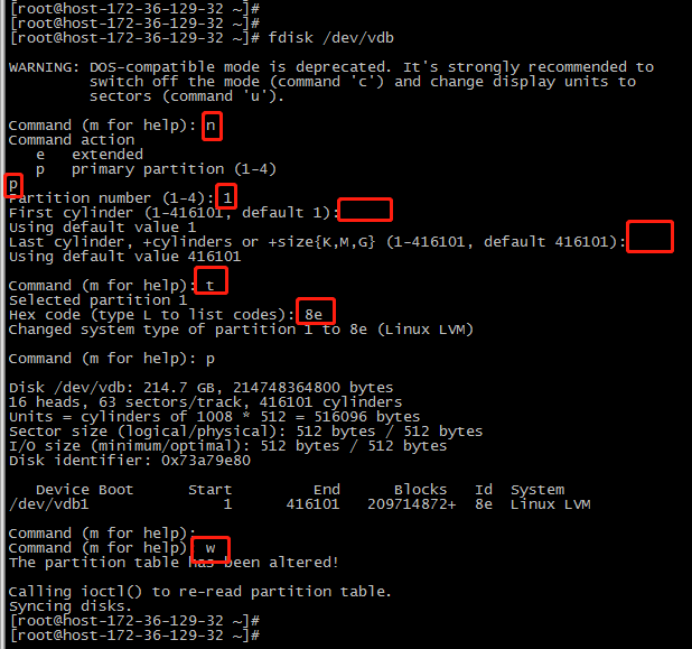 #fdisk /dev/vdb --进去/dev/vdb的数据盘