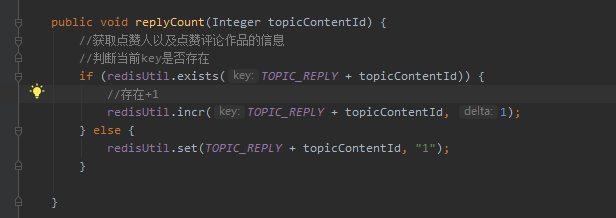 这里还有一个是对用户回复的统计,由于需要统计每条回复被多少人回复了,这里我采用看传统redis,key,v结构