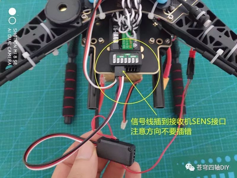 信号线插到接收机的SENS接口,注意方向不要插错。