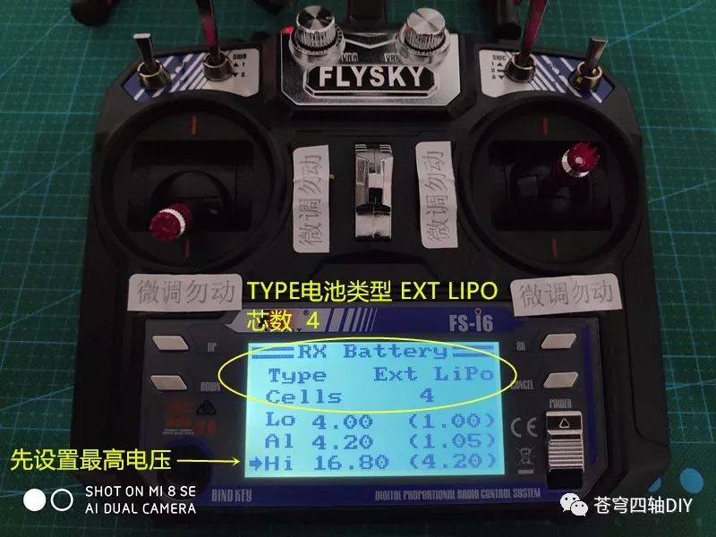 TYPE表示电池类型,选择Ext Lipo 锂电池;