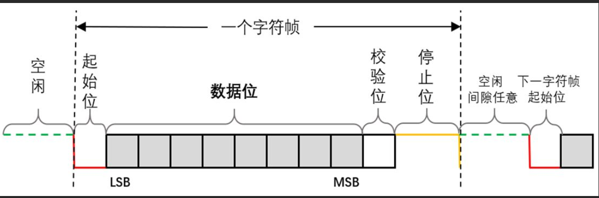 数据一位一位地顺序传送,起始位开始,停止位结束,字符之间没有固定的时间间隔要求