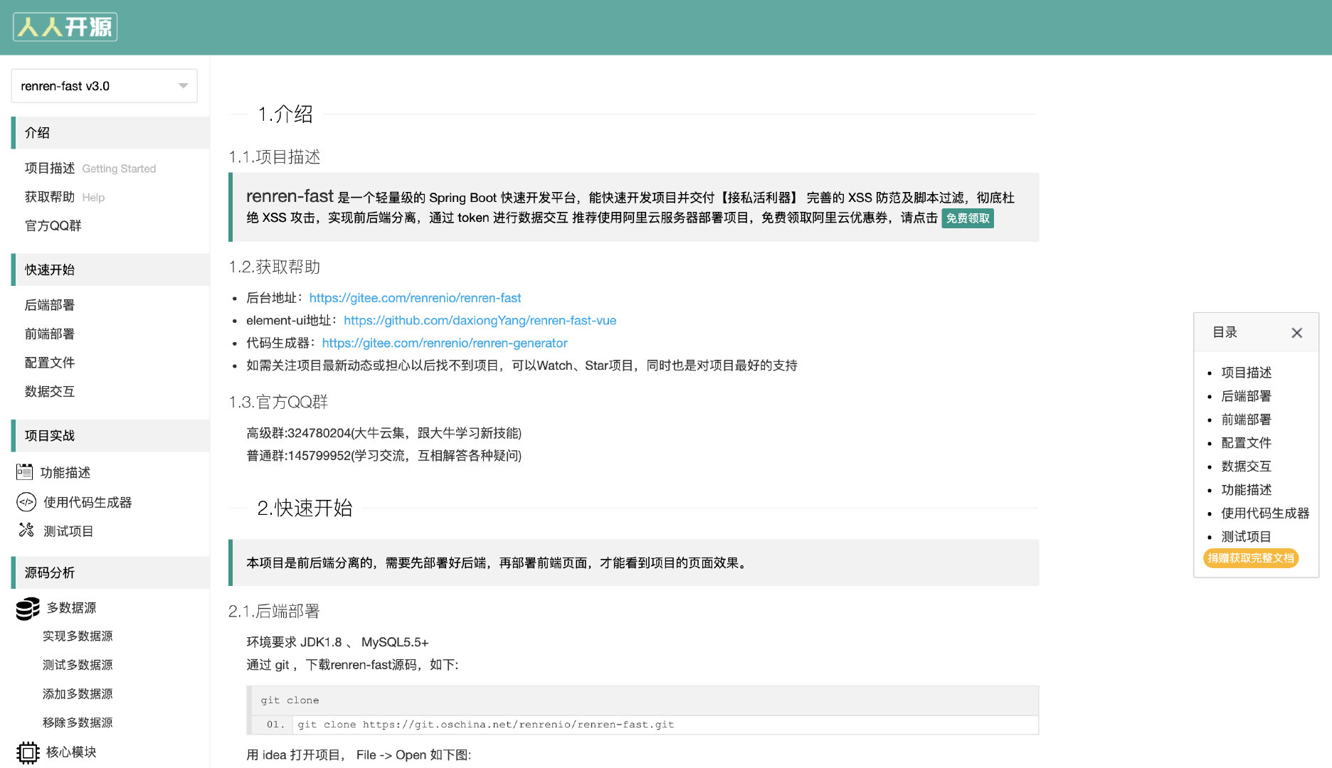 官网文档:https://www.renren.io/guide#getdoc