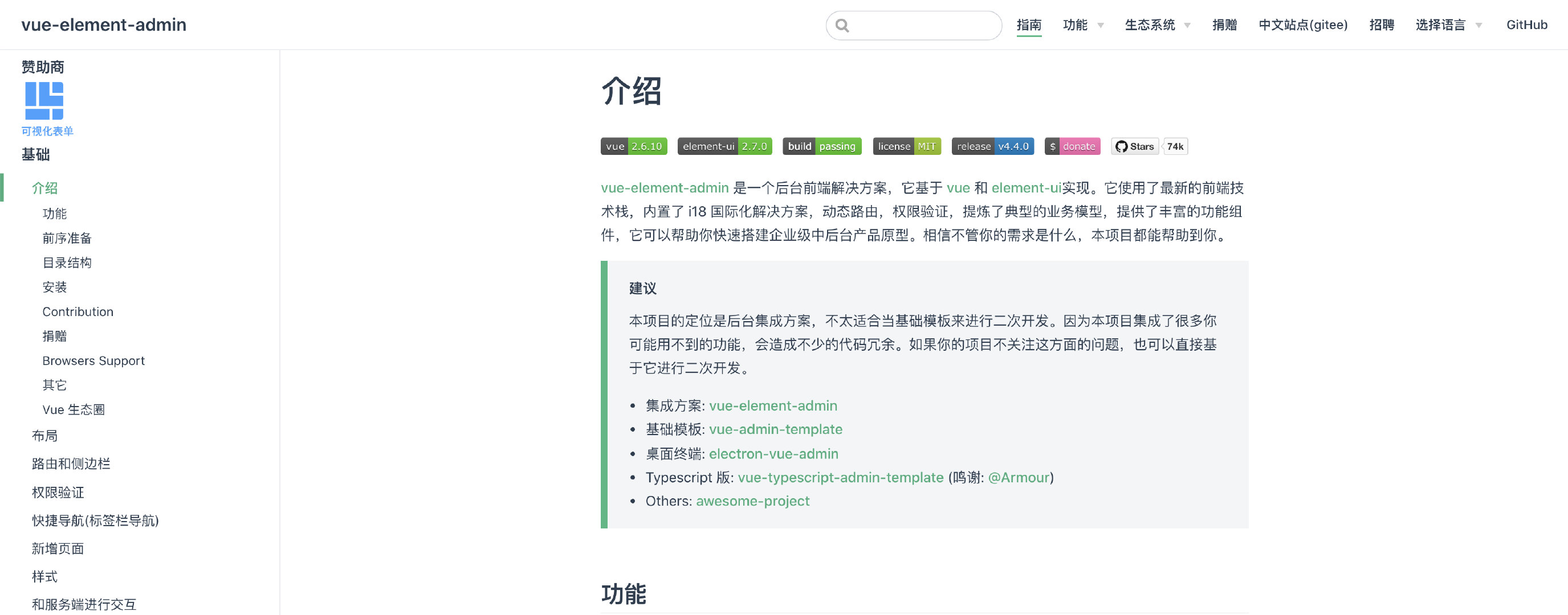 这几个项目被推荐率也是极高的,从第一行介绍我基本就知道需要去学Vue的语法,奈何我太懒了,搁置着。