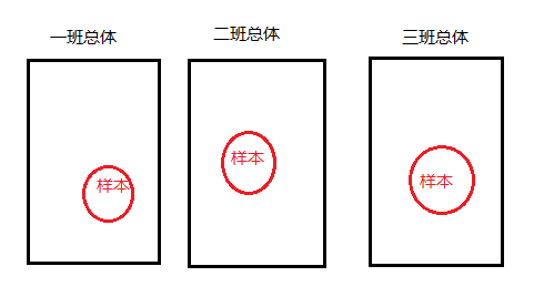 这里需要澄清样本和总体的概念:总体有三个,分别是三个班级的所有学生,从三个总体中分别抽取出样本容量为n的三个集合,是我们所谓的样本。如下图