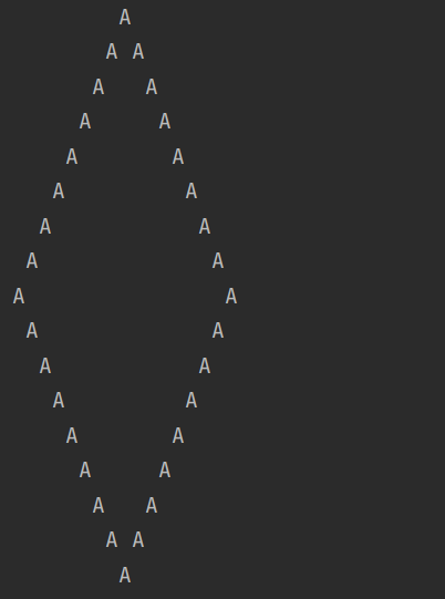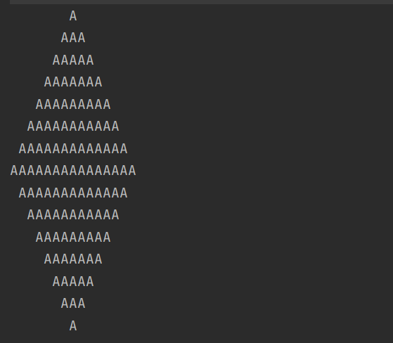 // 也是正三角和倒三角拼接出来的形状,菱形的每行都是奇数,没有偶数。
