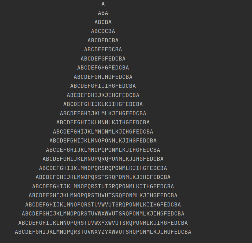 // 3号 内循环 控制 从字母金字塔的中轴线起 左半边的字母打印,