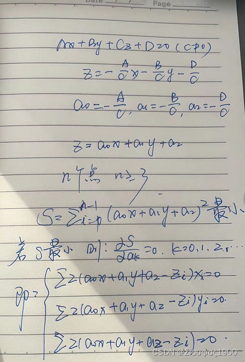 最小二乘法 拟合平面是我们最常用的拟合平面的方法,但是有特殊的情况是用这种方法是不能拟合的,后续会加上这种拟合方法(RANSAC)。