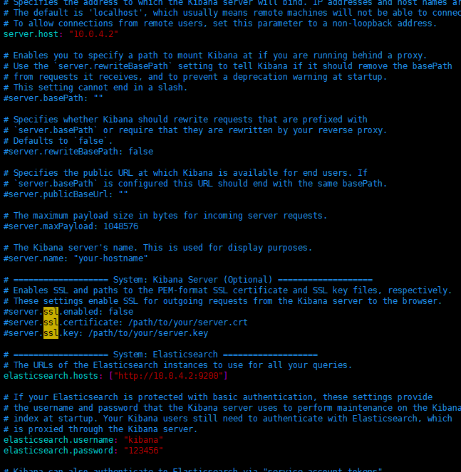 elasticsearch.password: 步骤三设置的密码