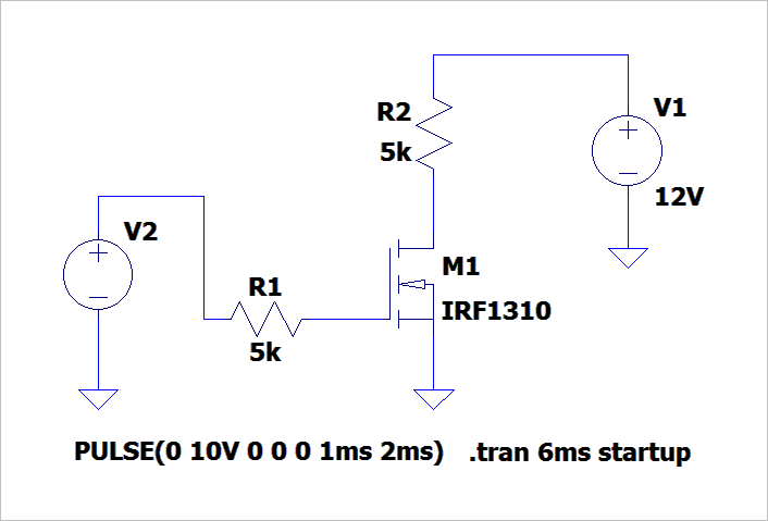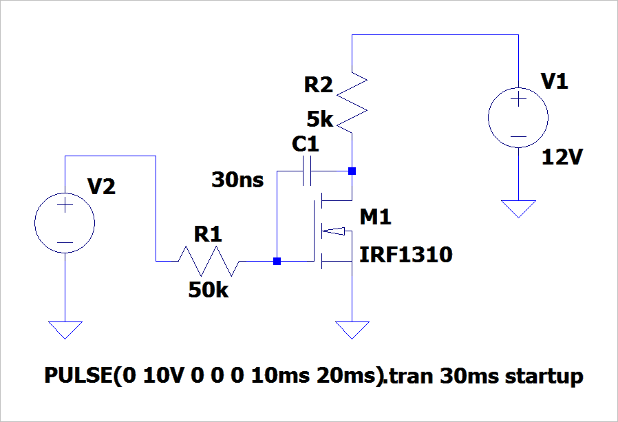 为了说明 MOS 管的 Miller 效应,下面在 LTspice 中搭建了最简单的 MOS 管开关电路。
