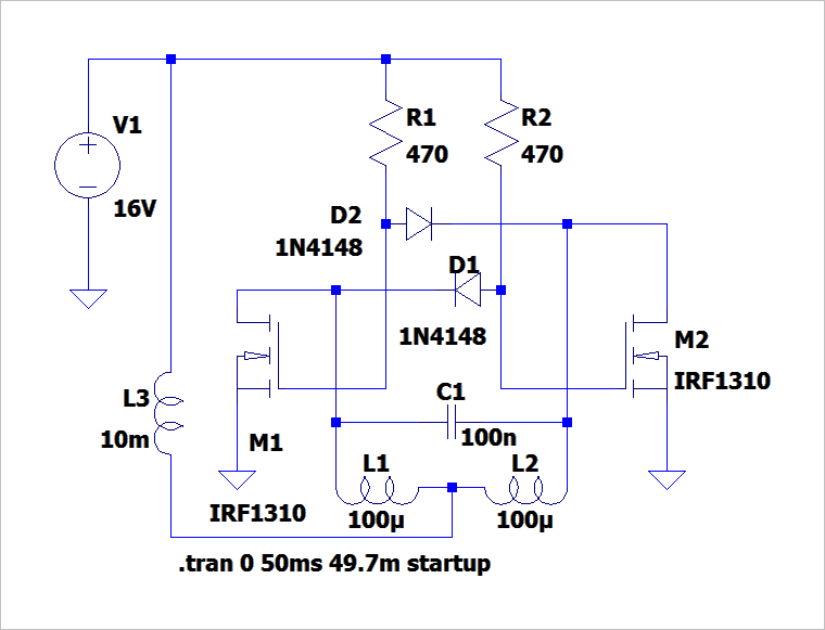 ▲ 图1.1.1 LTspice仿真ZVS振荡器电路图