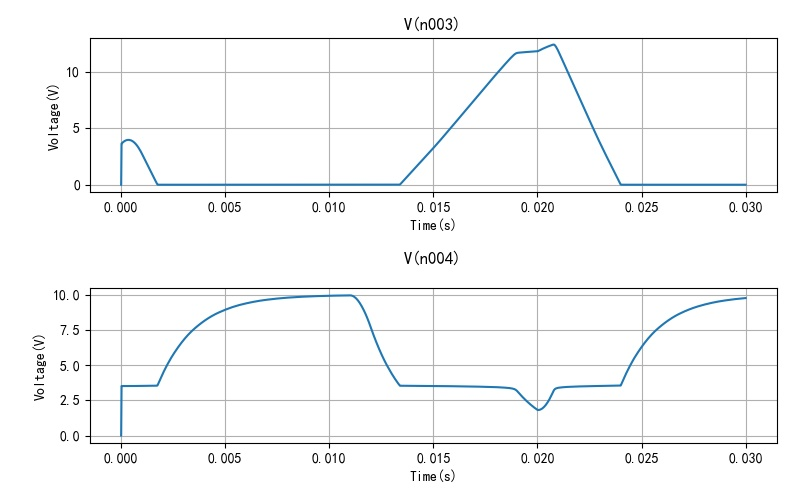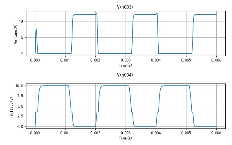 下面给出了 MOS 管 M1 的漏极与栅极电压波形,可以清楚的看到栅极电压在上升与下降阶段都出现了小台阶。