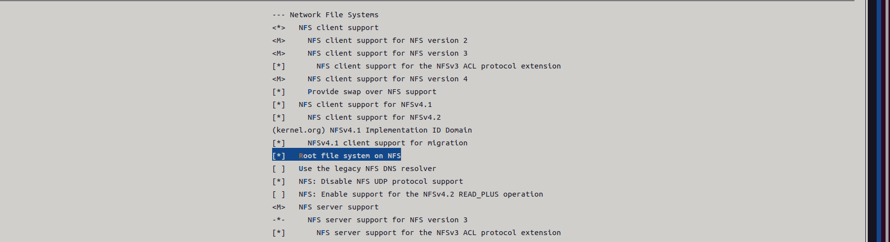 sudo apt install nfs-common内核配置: