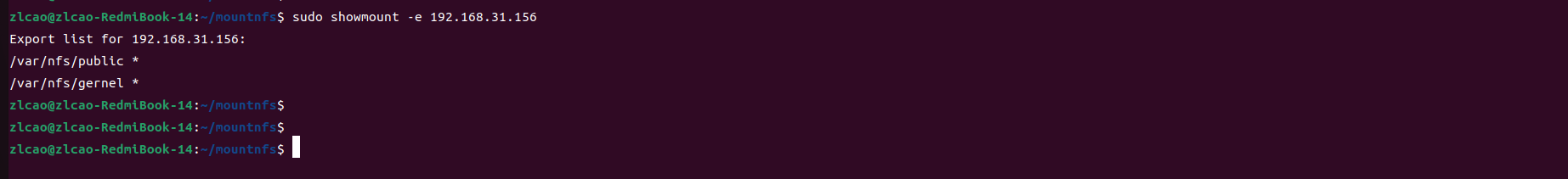 sudo showmount -e 192.168.31.156