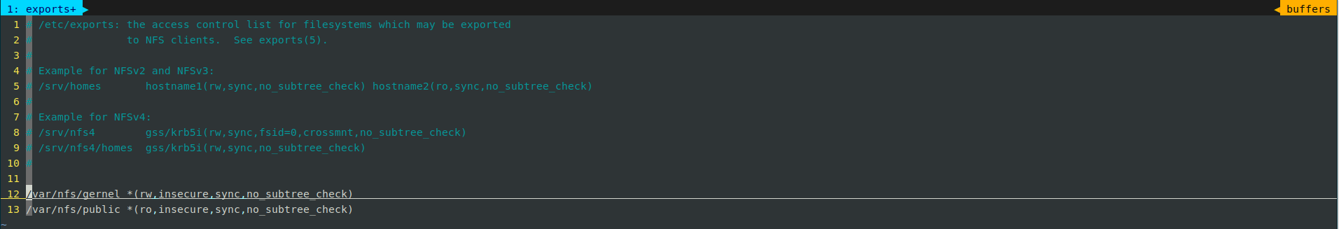 sudo chown nobody:nogroup /var/nfs/gernel2. 修改 exports 文件