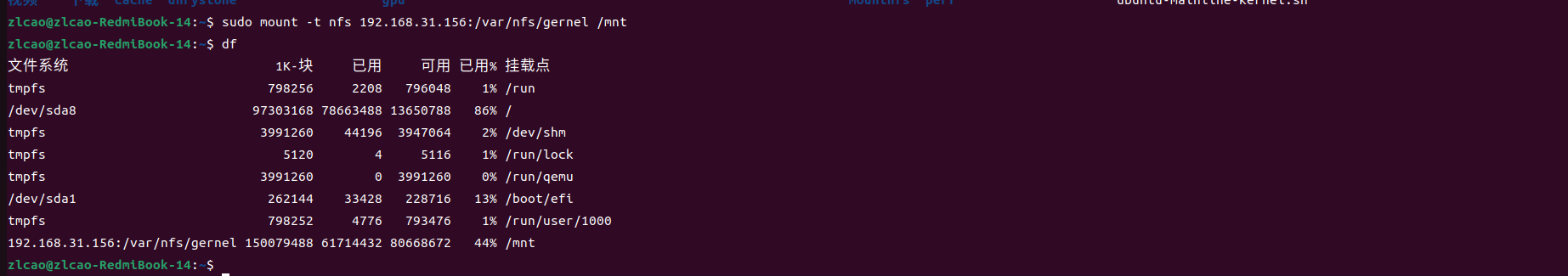sudo mount -t nfs 192.168.31.156:/var/nfs/gernel /mnt