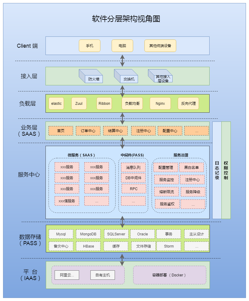 【架构】软件分层架构视角图注:仅供参考学习,欢迎交流版权声明:本文为weixin_43800786原创文章,遵循CC 4.0 BY-SA版权协议,转载请附上原文出处链接和本声明。原文链接:https://blog.csdn.net/weixin_43800786/article/details/90459102