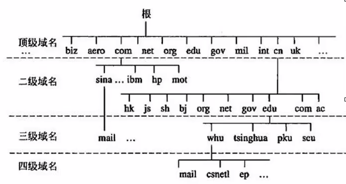 - 根据级别不同,域名可以分为:顶级域名、二级域名、三级域名等