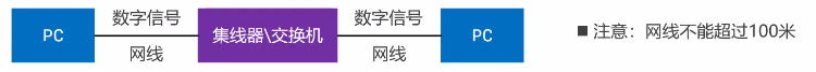 - 中继器:放大信号,延长数据传输距离