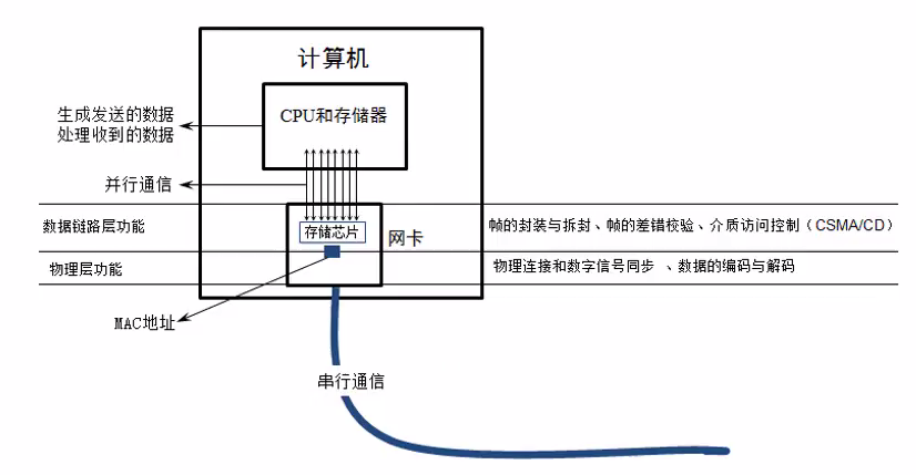 - 网卡接受到帧,会进行差错校验,如果通过则接受,去掉FCS然后传输给网络层,否则丢弃