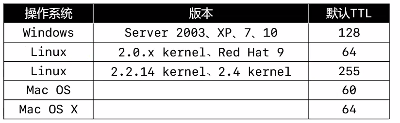 - 用ping命令后的TTL,能够推测出对方的操作系统、中间经过了多少个路由器