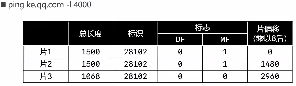 - 第2位(Don't Fragment):1代表不允许分片,0代表允许分片