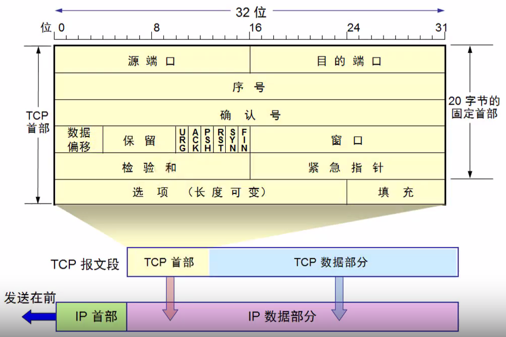 - 占6位(URG、ACK、PSH、RST、SYN、FIN)