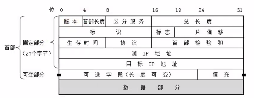 - 网络层数据包(IP数据包,Packet)由首部、数据2部分组成
