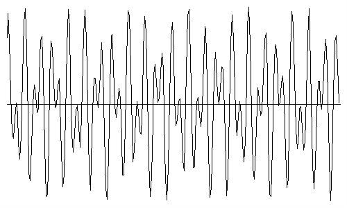 我们都知道原始的声音是波形图,不过原始的波形图并没有太大研究价值,而且事实上也看不出“波形”。因为震动频率太高,比如帕瓦罗蒂的high C,500多的震动频率,表示一秒钟要震动500多次,那肯定是看上去一大坨,类似这样: