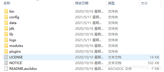 6) Windows 版的 Elasticsearch 的安装很简单,解压即安装完毕,解压后的 Elasticsearch 的目录结构如下