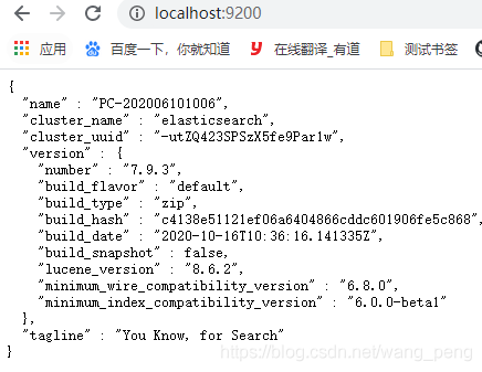8) 最后在浏览器输入 localhost:9200,回车,显示下图的信息就OK了