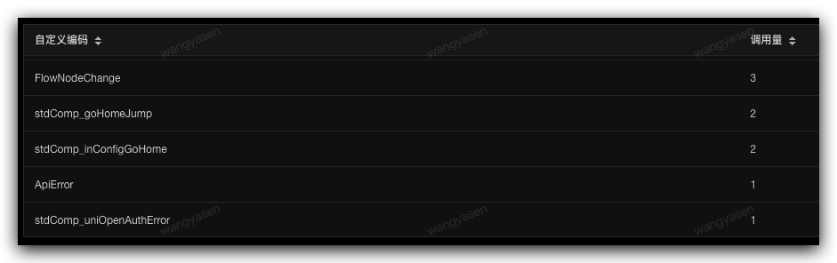 下图例子中带Error的编码,代表进入catch逻辑,需要我们关注,可以通过设置调用量的阈值,来进行告警配置