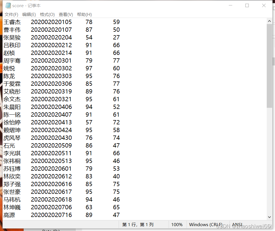 txt文件内容如下图:姓名 学号 数学成绩 英语成绩