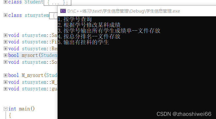 cout << "3.按学号输出所有学生成绩单--文件存放"<<endl;