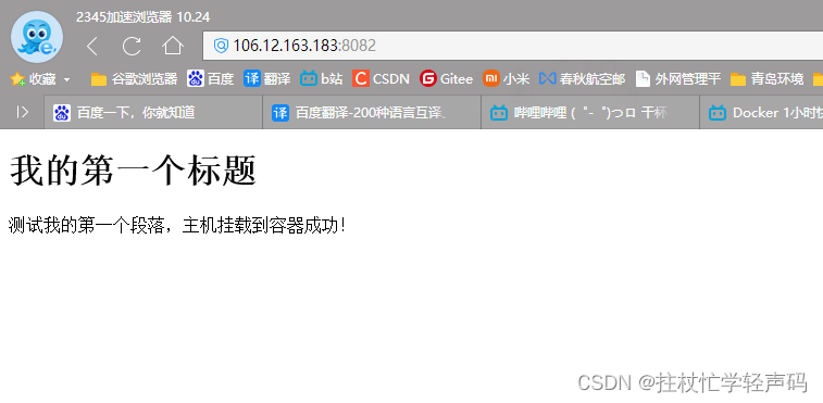 <p>测试我的第一个段落,主机挂载到容器成功!</p>