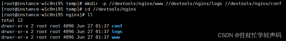 2、拷贝容器内 nginx 实例默认配置文件到本地刚才创建的 conf 目录下