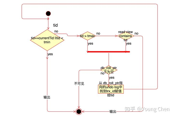 trx_id小于m_ids中的最小值up_limit_id,说明生成该版本的事务在ReadView生成前就已经提交了,所以该版本可以被当前事务访问。 - 如果被访问版本的