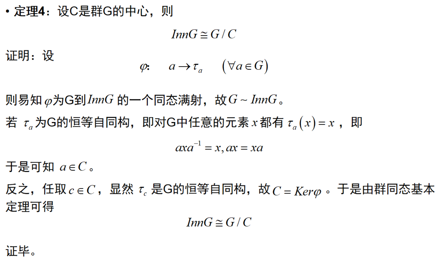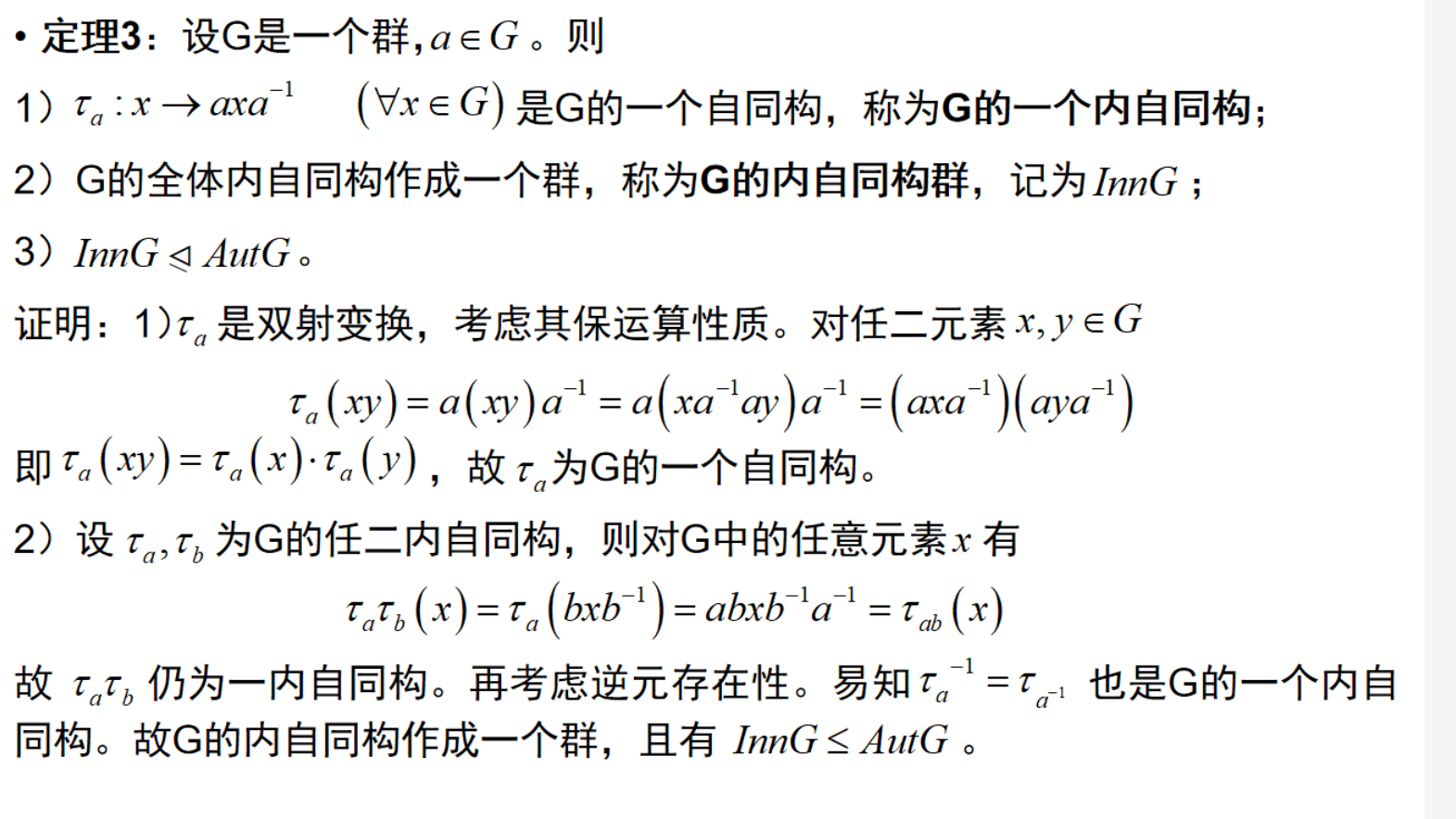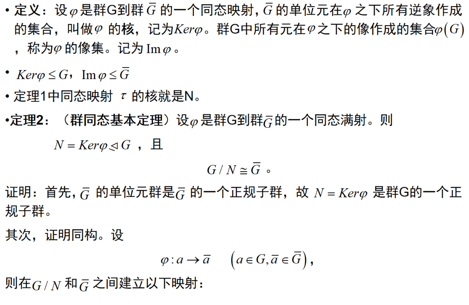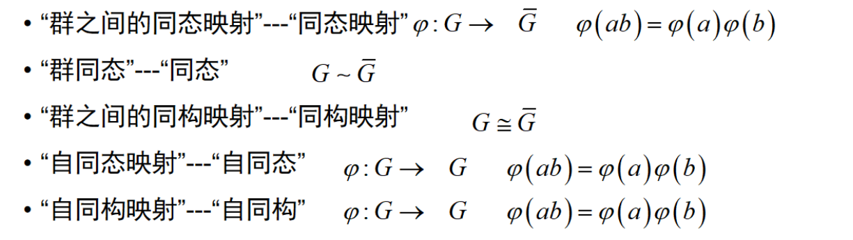 这里要强调一下概念:同态映射不一定是满射,因此有同台映射的两个群不一定是同态,必须是要有满射的。自同态与自同构主要体现的是那个映射比较特别,毕竟群肯定和自己同态同构。