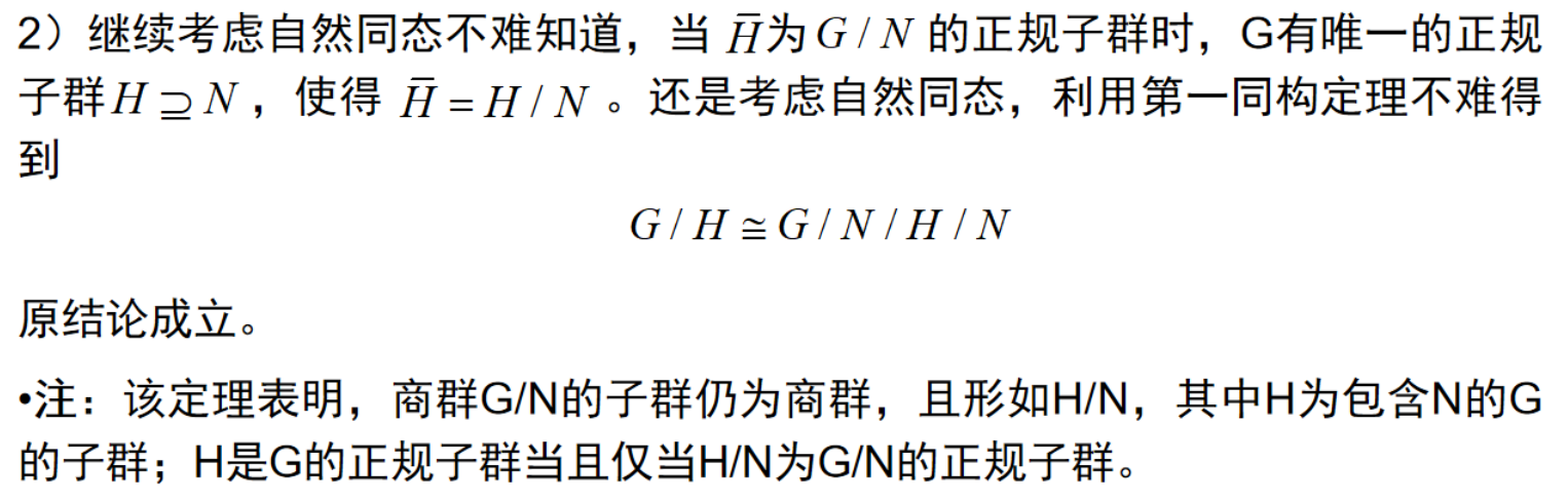 (2)第二个结论就是:G/H这个商群(aH,bH···),上下同时做N的商群,二者同构。