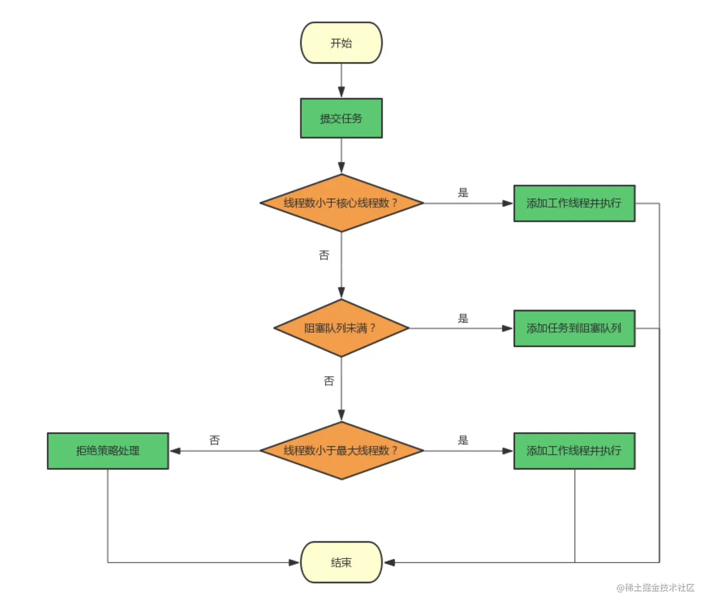 corePoolSize,则创建新线程来处理任务,即使线程池中的其他线程是空闲的; - 如果线程池中的线程数量大于等于