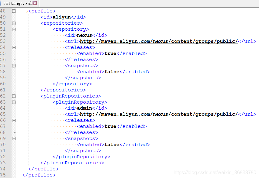 3. <snapshots><enabled>false</enabled></snapshots>告诉Maven不要从这个仓库下载snapshot版本的构件。